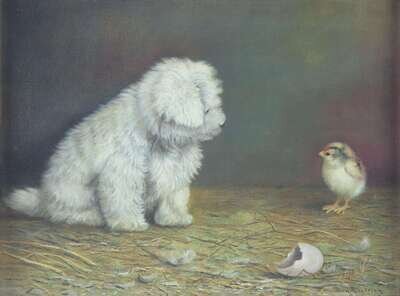 BEN AUSTRIAN (AMERICAN 1870-1921) PUPPY AND CHICK
