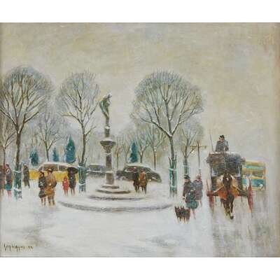 GUY CARLETON WIGGINS (AMERICAN 1883-1962) "ON 5TH AVENUE ON A WINTER'S AFTERNOON"