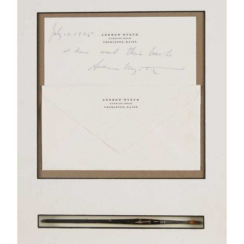 ANDREW WYETH (AMERICAN 1917–2009) PERSONALIZED STATIONARY WITH ACCOMPANYING ENVELOPE, AND ARTIST'S ORIGINAL PAINTBRUSH