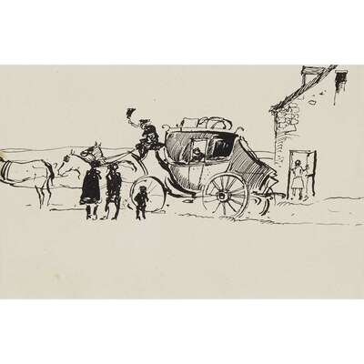 ANDREW WYETH (AMERICAN 1917–2009) CHRISTMAS CARD WITH COLONIAL CARRIAGE