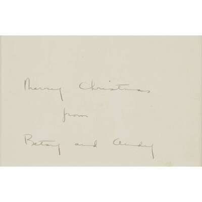 Inscribed and signed 'Merry Christmas/from/Betsy and Andy' verso, ink on paper