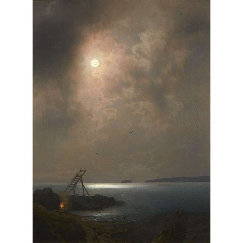 HERMANN HERZOG (AMERICAN/GERMAN 1832–1932) MOONLIT COVE