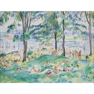 MARTHA WALTER (AMERICAN 1875–1976) "TUCKS POINT;" WITH BATHERS STUDY VERSO