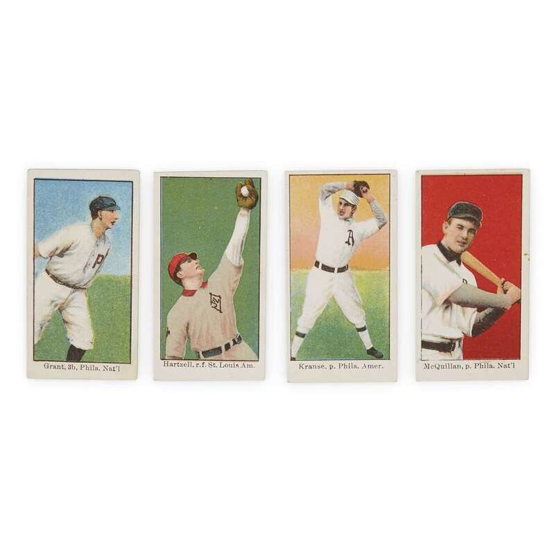 Players include Grant (Phila. Nat'l), Hartzell (fielding) (St. Louis Am.), Krause (Phila. Amer.), and McQuillan (Phila. Nat'l). A near-fine group.