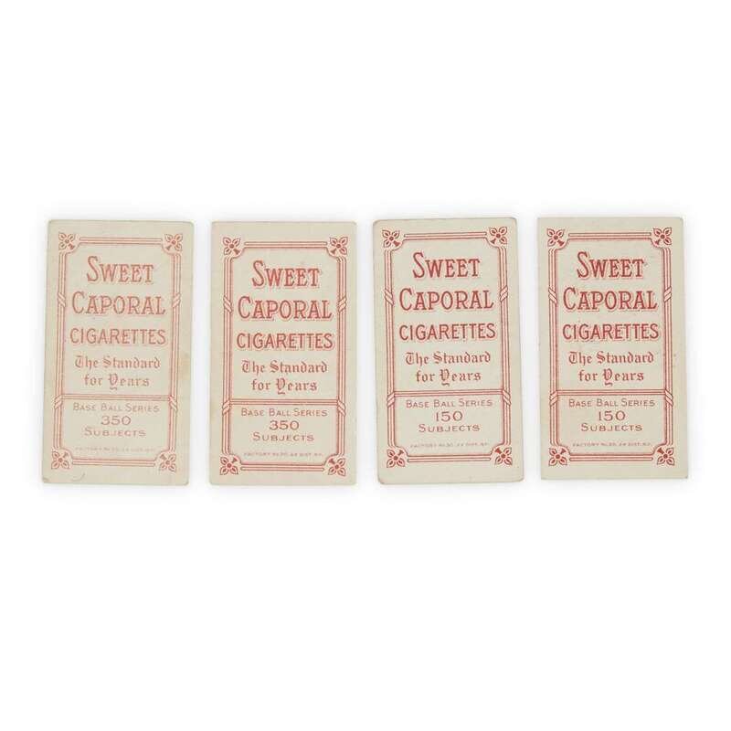 Huggins, Cincinnati (Sweet Caporal 350/30 back); Hulswitt, St. Louis Nat'l (Sweet Caporal 350/30 back); Keeler, N. Y. Amer, (Sweet Caporal 150/30 back); McIntyre, Brooklyn (Sweet Caporal 150/30 back). A near-fine group.