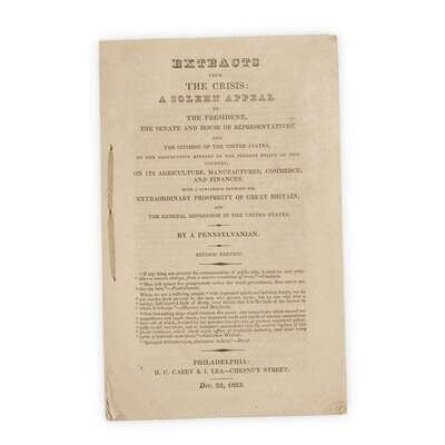 [Americana] (Carey, Mathew) Extracts from The Crisis: A Solemn Appeal to the President, the Senate and House of Representatives, and the citizens of the United States, on the destructive effects of the present policy of this ...
