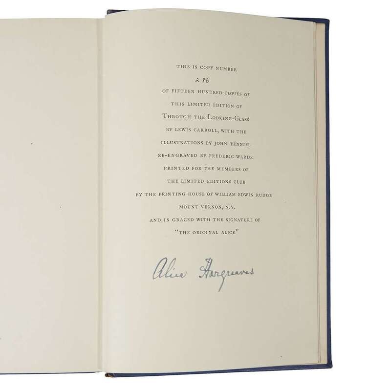 Limited Editions Club of New York. New York, 1935. #286/1,500 signed by Alice Hargreaves. Illustrated by John Tenniel. 8vo, original richly-gilt deep blue calf, all edges gilt, in original red cloth slip case.