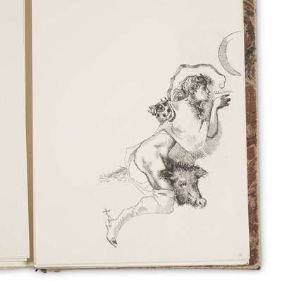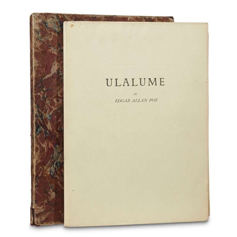 Rome: Carlo Bestetti, Edizione d'Arte, (1949). First limited edition, #89/99 (of 125) numbered copies. 4to. In parallel English and French text, using French translations of Stephane Mallarme. Illustrated with eight full-page etchings by Dario Cecchi, loose as issued. The last etching signed in purple ink by Cecchi, with an autograph presentation by the same on front blank. Publisher's printed cream wrappers over flexible boards; in slipcase and chemise. A near fine to fine copy with light wear. Dario Cecchi (1918-1992), active as a costume designer and art director for Hollywood and Italian motion pictures. .