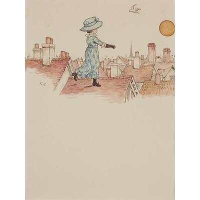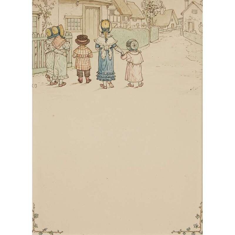 [Children's & Illustrated] Kate Greenaway (English, 1846-1901) 2 original watercolors for the book Under the Window, 1879