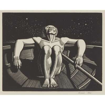Wood engraving, 1933. 1 of 250 proofs printed. 5 3/8 x 6 7/8 in. (image size). Signed by Kent in pencil below image. Burne Jones 92. Framed. Reproduced in Rockwellkentiana (1933) and the Professional Art Quarterly (June, 1936).