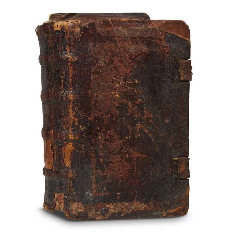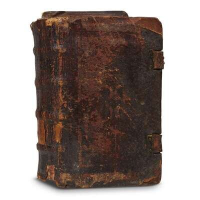 [Frankfurt or Main], [ca. 1590]. 8vo. Lacking title-leaf, [19 leaves], 1-1135[1], (24)pp. 12 woodcut illustrations in text. Text in German, apparatus in German and Latin. Contemporary blind decorated brown pig skin over wooden boards, metal clasps. Front board detached, covers and extremities worn and rubbed, one metal catch defective; first few signatures sprung and chipped at edges, scattered paper faults, text moderately toned.