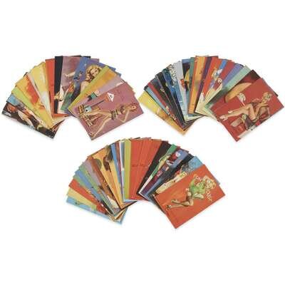 Mutoscope cards, produced by the International Mutoscope Reel Company, were sold in vending machines in the 1930s and 1940s. Featuring illustrations by Earl Moran and Zoë Mozert, a magazine illustrator and pin-up artist who often modeled for her own works. All in excellent condition.