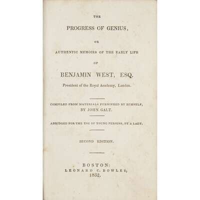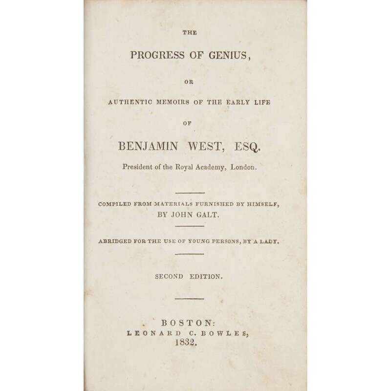 [Americana] [West, Benjamin] Galt, John The Progress of Genius, or Authentic Memoirs of the Early Life of Benjamin West…Compiled…by…John Galt. Abridged for the Use of Young Persons, by a Lady