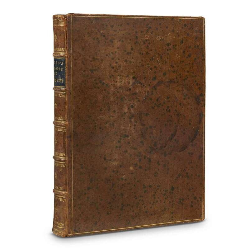 London: for T.Payne; B.White; T. Cadell, 1776. Translated by William Ellis. 4to, tall copy. [2], (i)-xviii, (2)-428, [14]pp. Contemporary speckled brown calf, joints and edges slightly rubbed; stamped in gilt; black morocco spine label; darkening to edges of endpapers; faded ownership signature at top of title-page. ESTC T134079; Brunet I, 459. First William Ellis Edition.