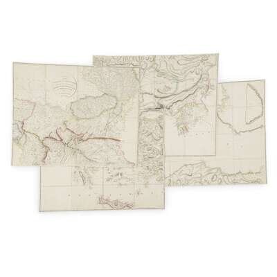 Engraved with original hand-colored outline London: Arrowsmith, A., 1801-1804. Four linen-backed sheets. Each approximately 25 x 32 inches; 640 x 812 mm; together approximately 51 x 63 inches; 1,613 x 1290mm. In period pull-off Russia and marbled board box, lettered in gilt. Box rubbed; maps creased along old folds as issued, scattered minor spotting, minor dampstains, but overall clean and attractive. .
