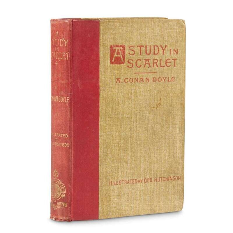 London, etc: Ward, Lock & Bowden, Limited, 1893. Small 8vo. With a Note on Sherlock Holmes by Dr. Joseph Bell. Illustrated by Geo. Hutchinson. With frontispiece and full-page and text illustrations. 12pp. publisher's catalogue at back. Original scarlet-lettered two-tone cloth, top edges gilt, others untrimmed. Boards cocked, moderately scuffed, ink residue on rear cover; scattered foxing to text, scattered small chips to fore-edge margins. De Wall 425.