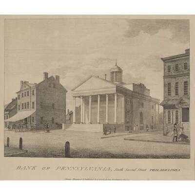 New Market, in South Second Street Philadelphia. Philadelphia, 1799. First edition. Uncolored. [From The City of Philadelphia. Philadelphia, 1800]. Snyder 16. [Alms House in Spuce Street Philadelphia.] [Philadelphia, 1799]. First Edition. Uncolored. [From The City of Philadelphia. Philadelphia, 1800]. Snyder 25. Bank of Pennsylvania, South Second Street Philadelphia. (Philadelphia, 1800). First edition. [From The City of Philadelphia. Philadelphia, 1800]. Snyder 27a.