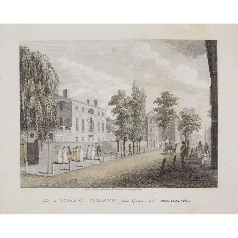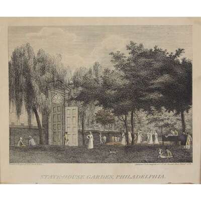 View in Third Street, from Spruce Street Philadelphia. (Philadelphia), (1800). First edition. Color starting to fade. [From The City of Philadelphia. Philadelphia, 1800]. Snyder 18. State-House Garden, Philadelphia. Philadelphia, 1798. First edition. Color starting to fade. [From The City of Philadelphia. Philadelphia, 1800]. Snyder 23.