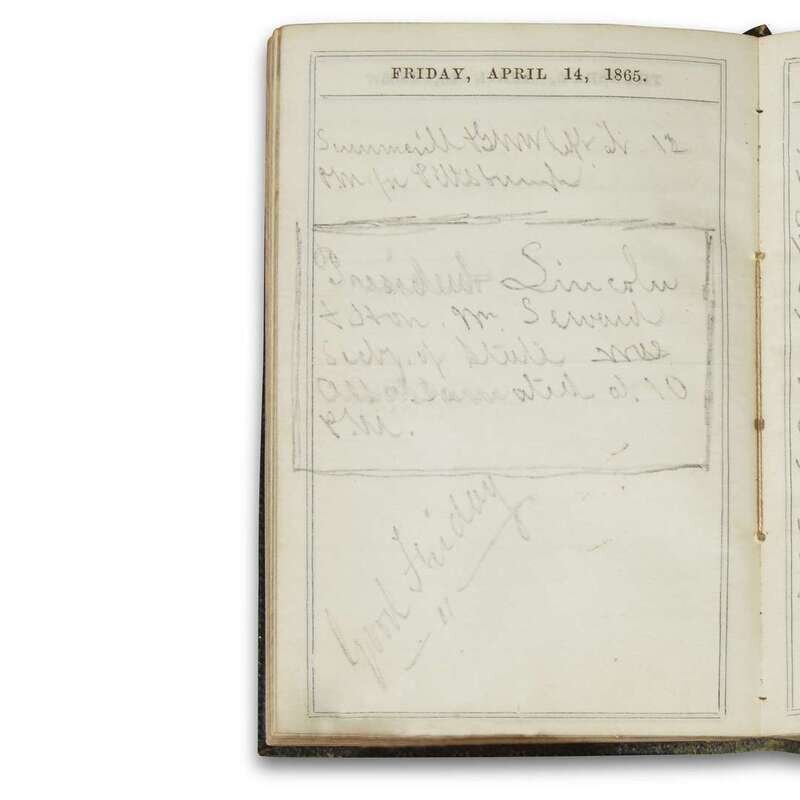 [No place]: Published Annually for the Trade, 1865. 48mo; 4 x 2 ½ inches, 100x64mm. Original flexible black morocco, complete with gilt stamped flap and pencil. Printed titles-page, calendar and other front matters. Manuscript entries in ink and pencil of a merchant active in Pennsylvania, includes activities in Reading, Meadsville and Titusville, during the Oil rush. The entry for April 14 refers to the death of President Lincoln. Front free endpaper detached but present; internally clear and legible.