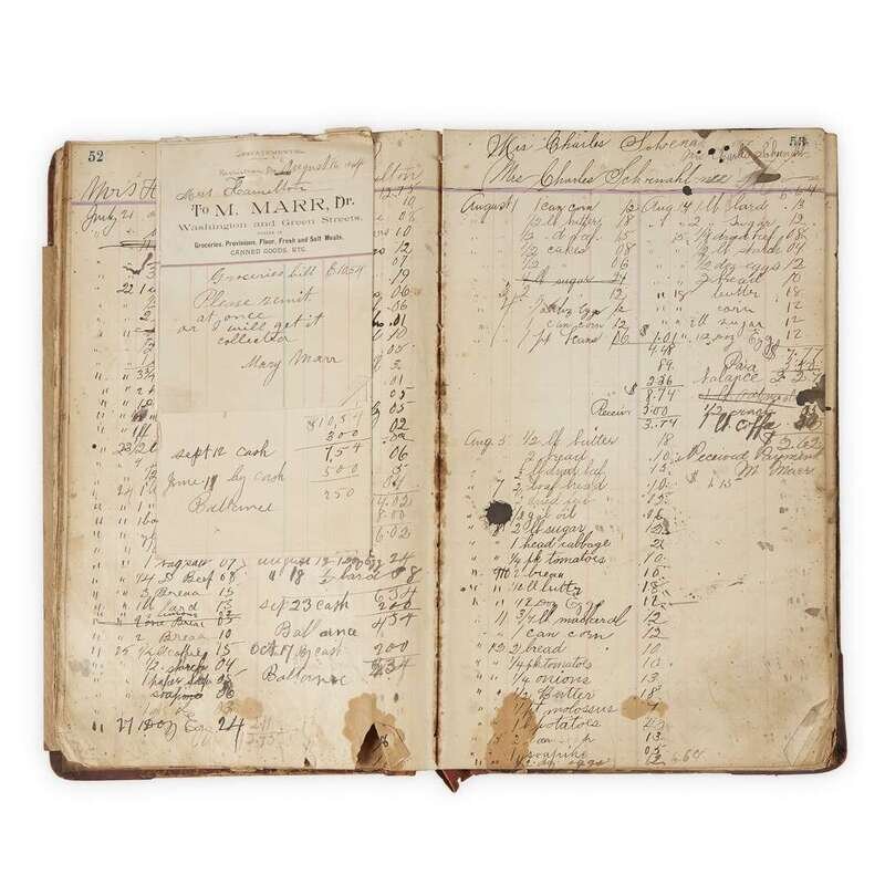 Manuscript Receipt Book 1808-1812. Folio. Approximately 50 leaves of entries from June 6, 1808 - June 6, 1812. Original sheep. Worn, covers detached or detaching, top of spine gone. Manuscript Letter Copy Book 1863-1865. Folio. Approximately 120pp. of letter copies of banking transactions at front dated 1863-1865; with approximately 140pp. of personal diary entries, some in short hand, of Elizabeth M. Marr of 524 Green St., Norristown, Pennsylvania dated June 1, 1903 - December 31, 1904, at rear. Original sheep and morocco. Rubbed and worn, spine defective; mold residue at bottom of many leaves. Manuscript Account Book 1893-1895. Folio. Approximately 116pp. entries for groceries and hard goods dated January 19, 1893-June 20, 1895. Original morocco and boards. Rubbed and worn; internally worn and stained. .