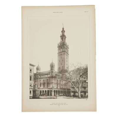 New York: The Architectural Book Publishing Co, 1915. In four volumes. First edition. Folio. 400 plates. Original three-quarter cloth portfolios; plates loose as issued. Portforlios worn, corners bumped, covers with varying amounts of soiling, dampstaining to the boards of the first and second volumes, spines of the first three volumes torn and frayed, front boards of the first and second volumes detached, spine beginning to separate on the third volume; various degrees of toning to plates, occasional dampstaining to corners and edges, occasional chipping and small tears to same, library ink stamps to the plates of the third volume.
