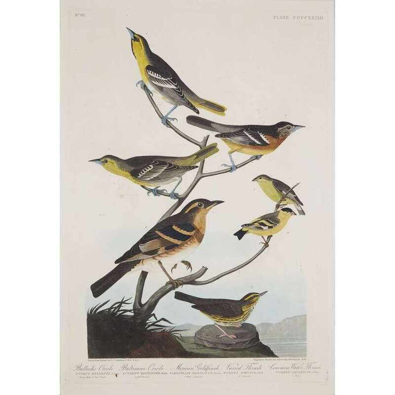 [Prints] Audubon, John J. Bullock’s Oriole. Baltimore Oriole. Mexican Goldfinch. Varied Thrush. Common Water Thrush