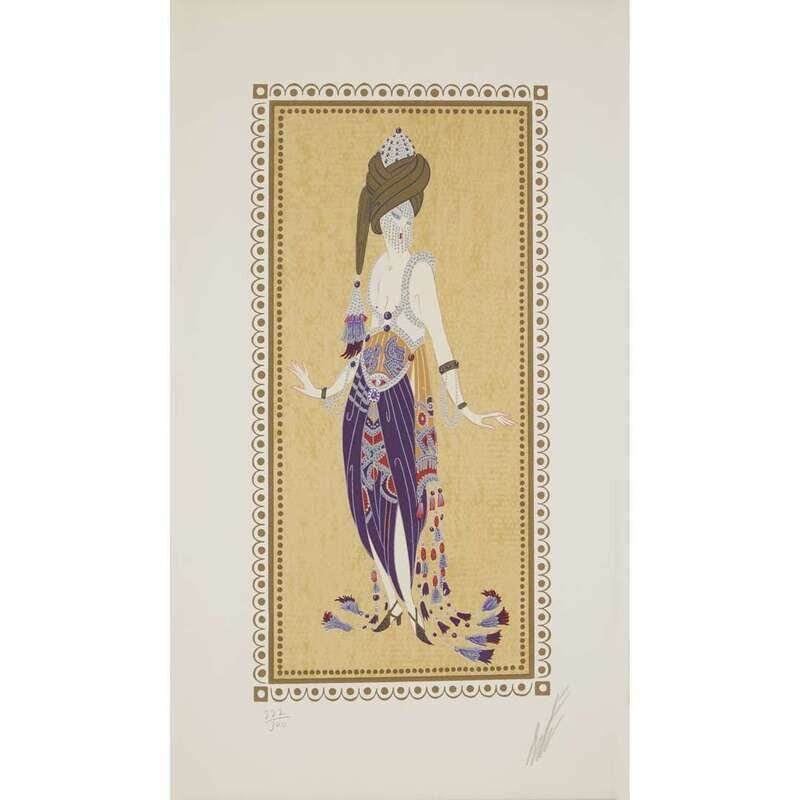 [Scheherazade suite: A Thousand and One Nights; A Thousand and Second Night], [1979] 13 ½ x 8 inches; 340x165mm. Each numbered #222/300 and signed in pencil by Erté below each image Framed.