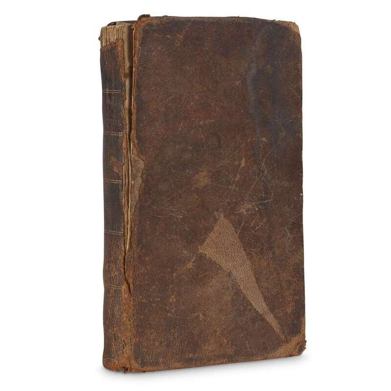 ... the Pacific Ocean, during the Years 1804, 1805, and 1806... Philadelphia: Mathew Carey, 1811. Third Edition. 12mo. (i)-viii, [2], (1)-252pp., complete with half-title. Contemporary sheep, rubbed and worn, joints starting, head of spine worn away; gilt-ruled spine; morocco spine label. Illustrated with frontispiece and five plates. Toned and soiled throughout; foxing, and tears to title-page; small close tears to leaves at front, dampstaining to top of leaves at rear portion of text; rear free endpaper detached; ownership signature at head of title-page. Howes G-77; Wagner/Camp 6:6; Sabin 26742.