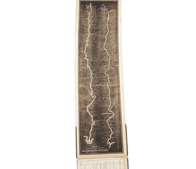 Cincinnati: J.A. & U.P. James, 1851. First edition. 16mo. Publisher's brown cloth; stamped in blind and in gilt, corners rubbed, spine ends worn away. Illustrated with folding frontispiece map of the Mississippi River and one map showing the Ohio, Missouri and Illinois Rivers, and a single leaf plan and bird's eye view of Cincinnati on one side and a Map of Hamilton County, [Ohio] on the other, as well as map and wood engraved vignettes in text, maps lightly toned and foxed. Howes M-383.
