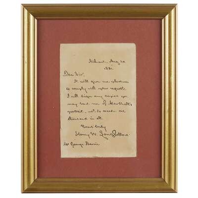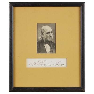 Longfellow, Henry Wadsworth. Autograph Letter, signed, August 20, 1881. 1p. 12mo. With Alcott, A. Bronson. Cut signature. Framed with small engraved portrait.