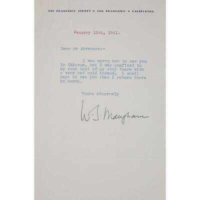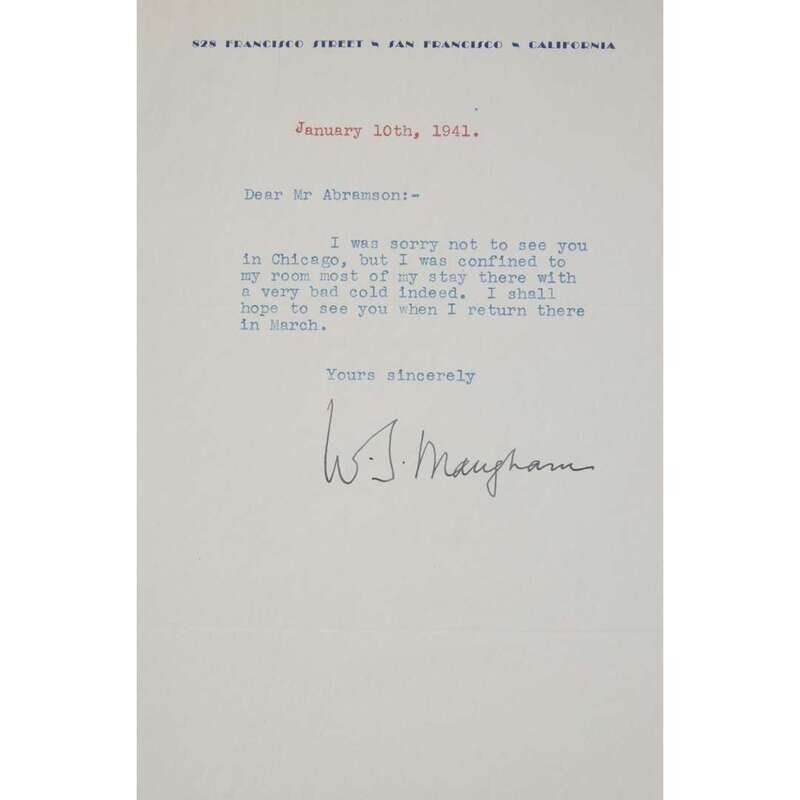 [Autographs & Manuscripts] Maugham, W. S(omerset) Typed Letter, signed