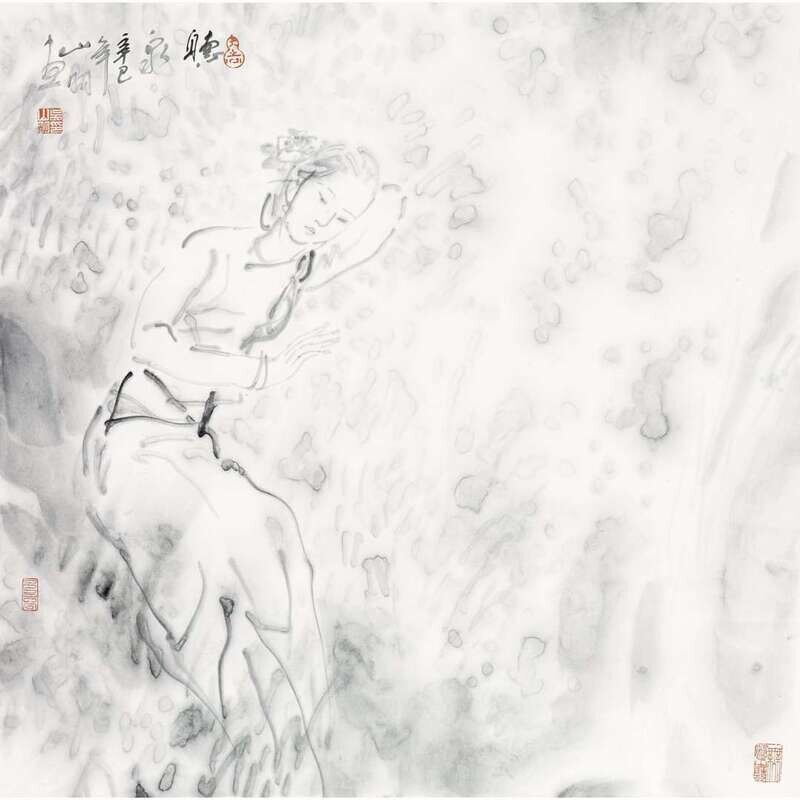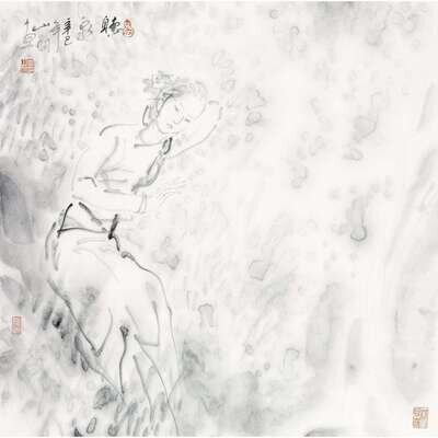 WU SHANMING (B.1941) DATED 2001 LISTENING TO THE SOUND OF SPRING WATER