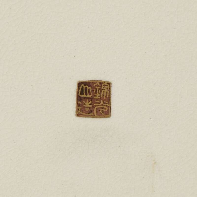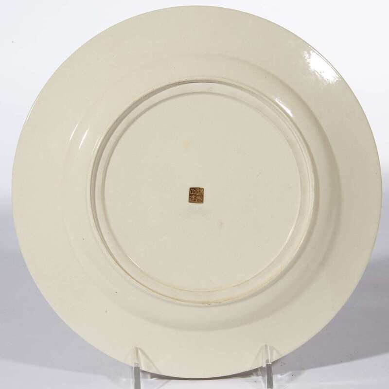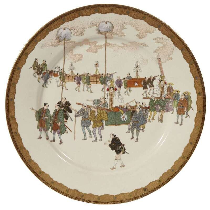 A Japanese Satsuma type gilt and enameled pottery "Tokugawa Castle Procession" plate, Kinkozan studio Meiji period