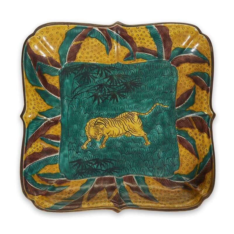 Depicting a tiger and bamboo, surrounded by plantain leaves, underside bearing a "Fu" mark.