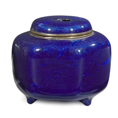 Japanese blue enameled metal censer and cover