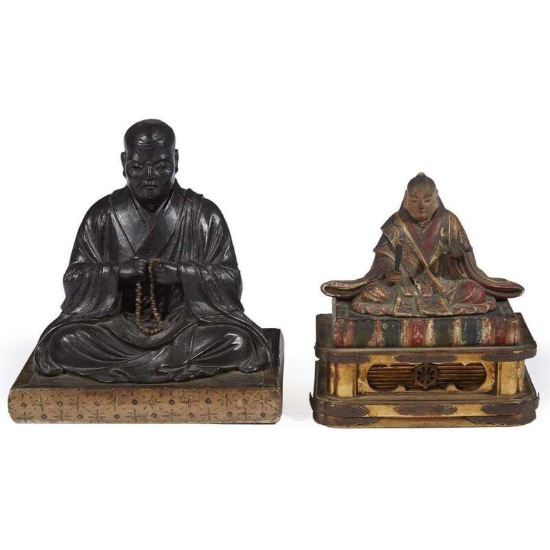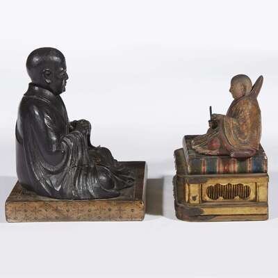 Two Japanese carved wood and lacquered figures of monks Edo/meiji period