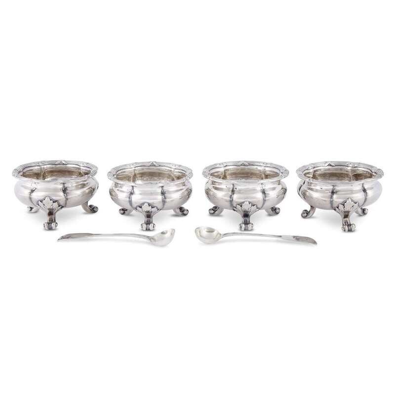 Set of four Victorian silver master salt cellars, Hunt & Roskell, Late Storr, Mortimer & Hunt, London, 1847