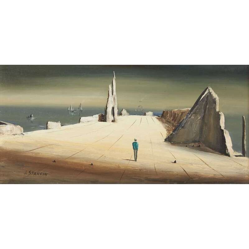 JOHN J. STANCIN (AMERICAN 1916-1988) SURREALIST LANDSCAPE