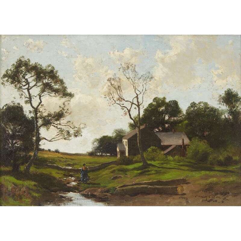 CHARLES HARRY EATON (AMERICAN 1850–1901) FARMSTEAD NEAR A CREEK