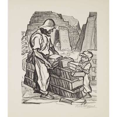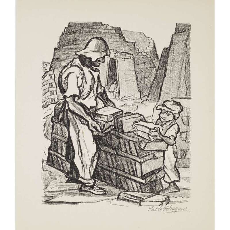 PABLO ESTEBAN O'HIGGINS (AMERICAN/MEXICAN 1904–1983) LADRILLEROS (BRICKLAYERS)FROM "MEXICAN PEOPLE"