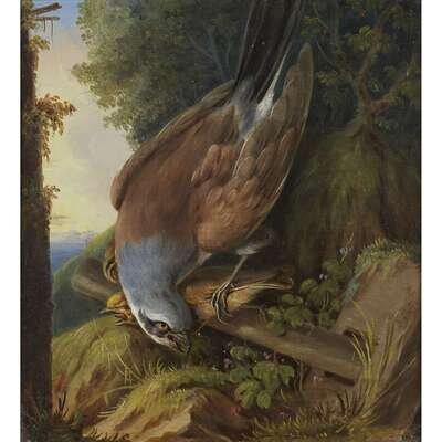 ATTRIBUTED TO FRANZ XAVER FOG (GERMAN, 1812-1844) HAWK WITH PREY IN WOODED LANDSCAPE