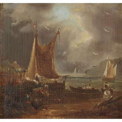 NORTHERN EUROPEAN SCHOOL (19TH CENTURY) SAILBOATS IN HARBOR