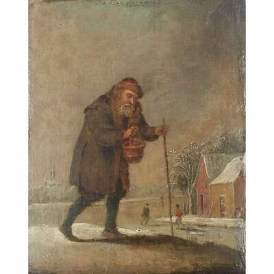 FOLLOWER OF DAVID TENIERS THE YOUNGER (FLEMISH 1610–1690) TRAVELER BESIDE A FROZEN ESTUARY