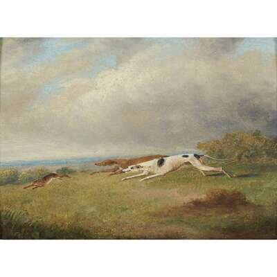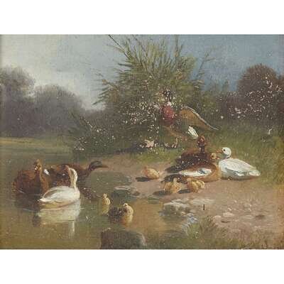 TWO PAINTINGSC.G. DANIELBRITISH SCHOOL (BRITISH 19TH CENTURY)(19TH CENTURY) TWO HOUNDS CHASING A RABBIT AND DUCKDUCKS AND CHICKS BESIDE A POND