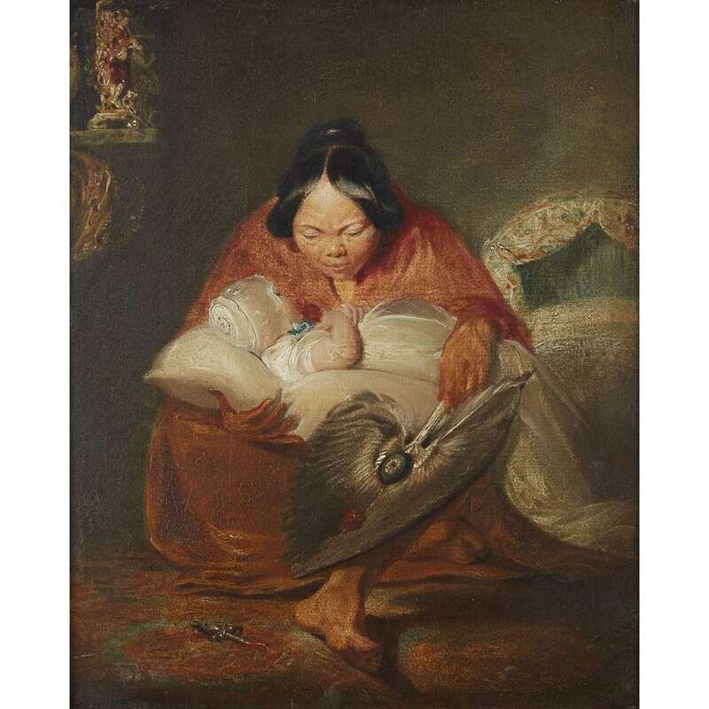 BRITISH SCHOOL (MID 19TH CENTURY) WOMAN WITH SLEEPING CHILD