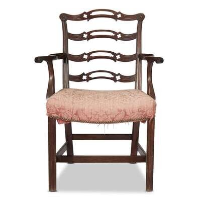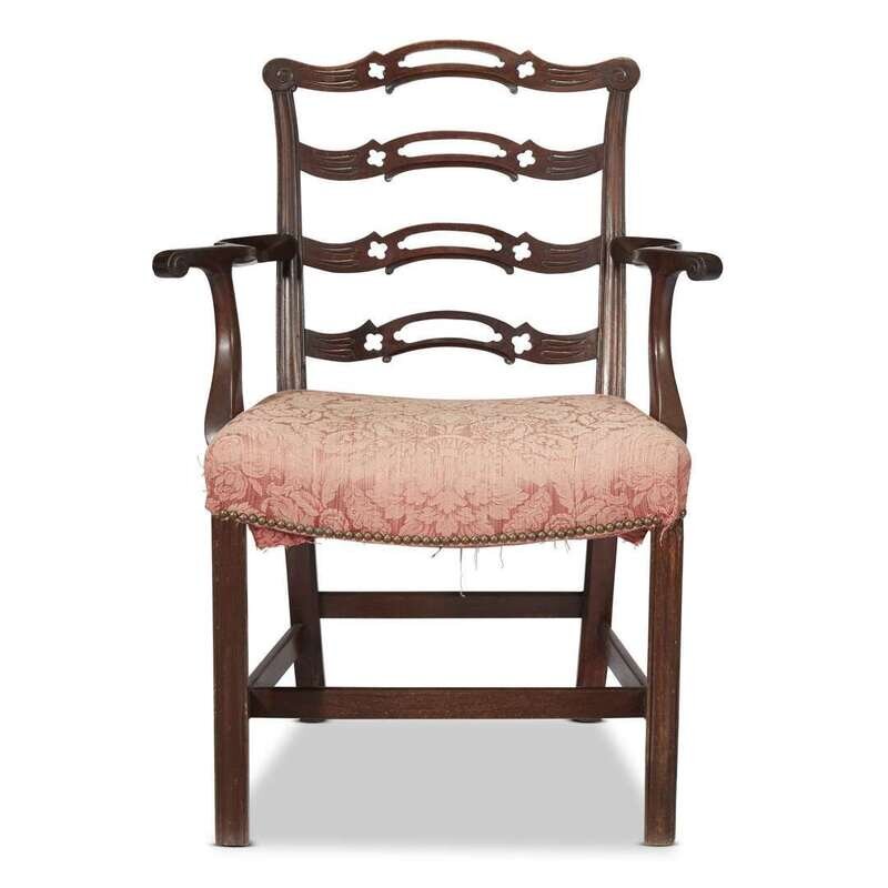 With rounded ears and volute-ended arms, on Marlborough legs.