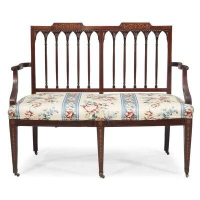 A Federal style inlaid mahogany settee 19th century