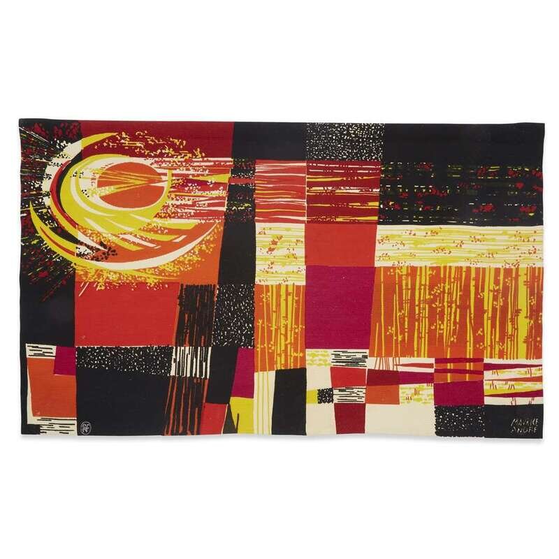 A woven wool tapestry with printed decoration Maurice Andre, produced by Robert Four, mid-20th century
