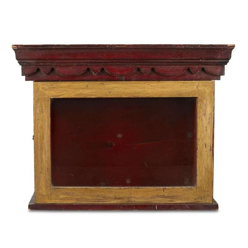 Painted wood and glass wall box late 19th/early 20th century