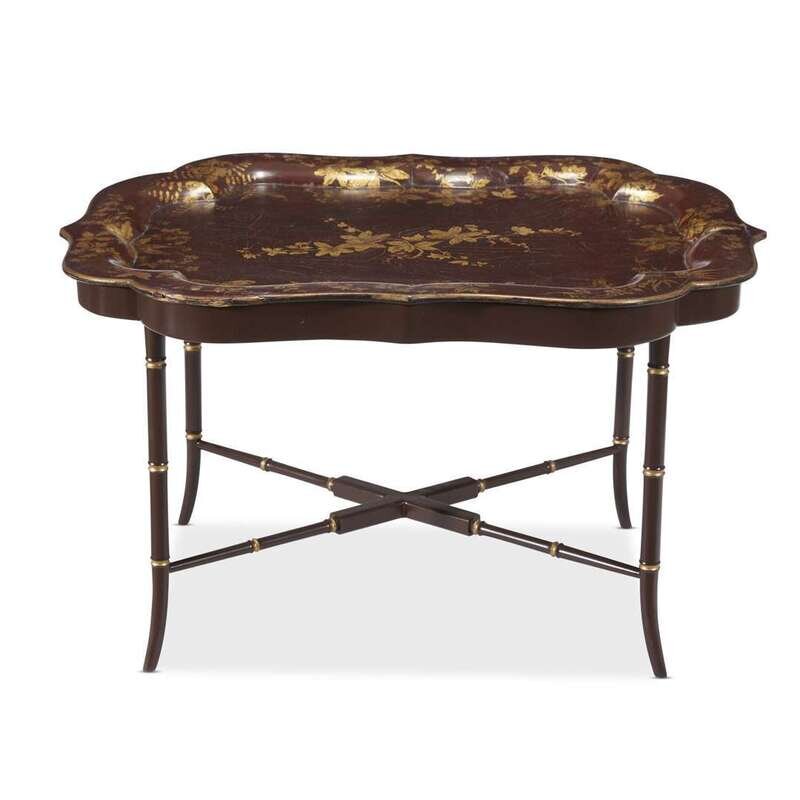 A Regency gilt floral and butterfly decorated papier mâché tray 19th century
